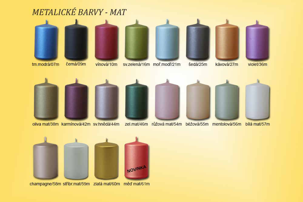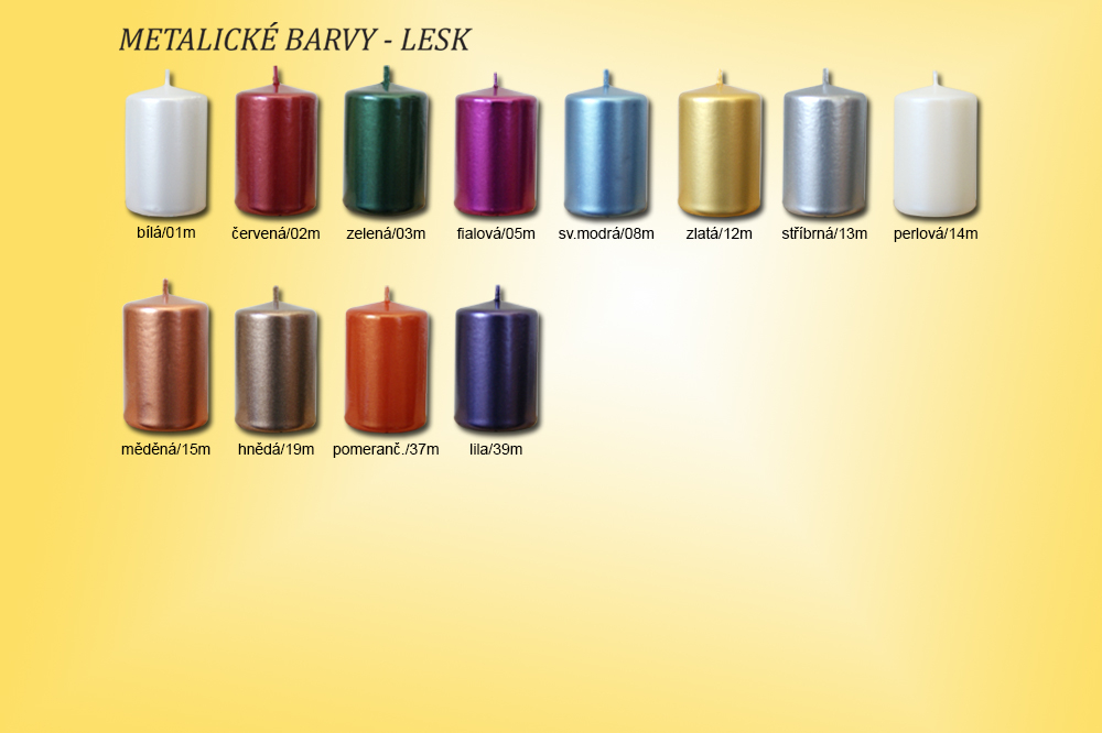Barvu svíčky vybírejte zde podle palety metalických barev, nebo pod obrázkem a